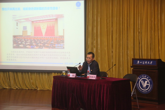 学校领导,校本部全体中层干部、全体党总支委员及党支部委员,以及附属医院领导班子、办公室主任等200余人参加了辅导报告会。